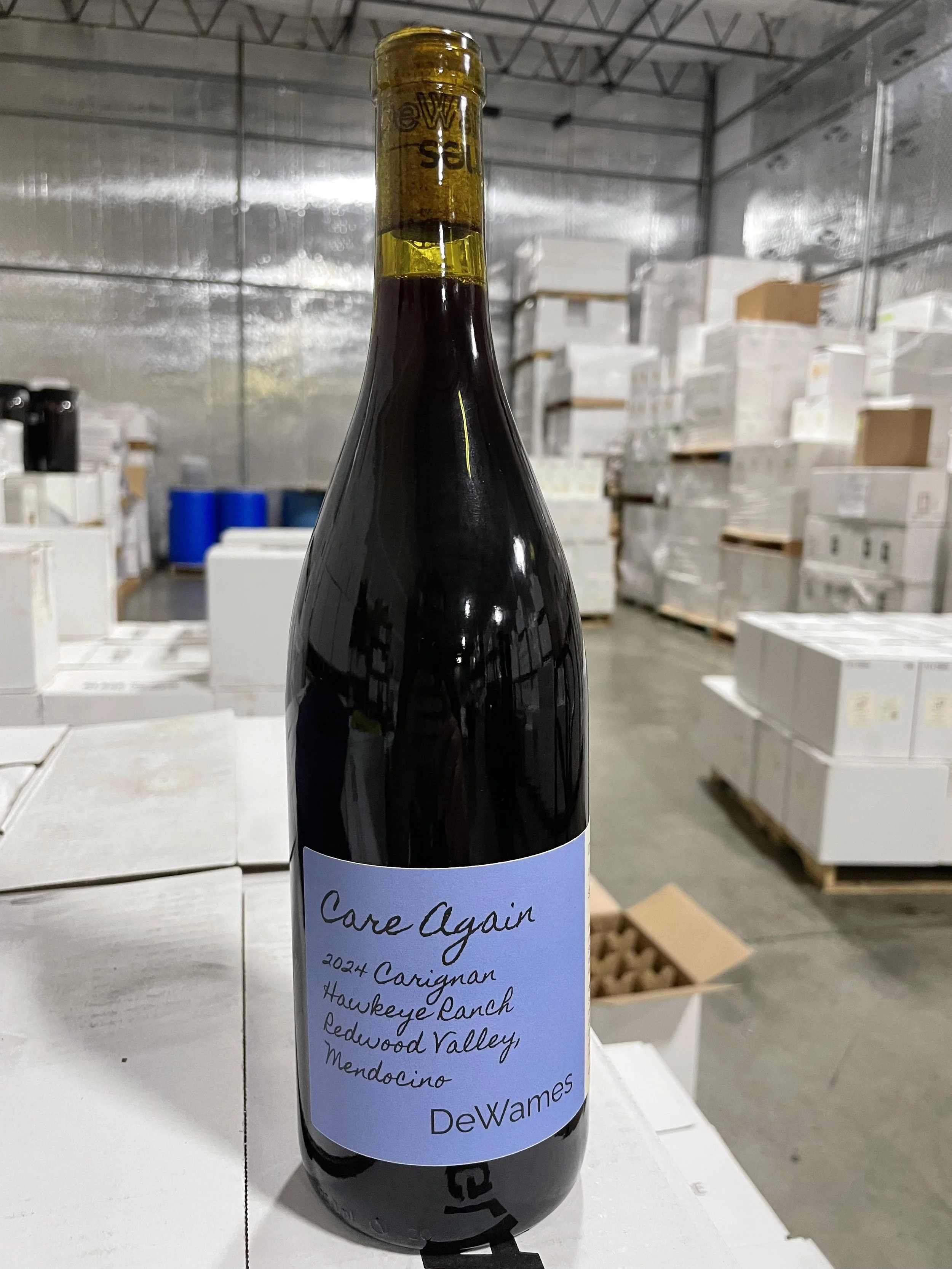 2024 "Care Again" Carignan, Hawkeye Vineyard, Redwood Valley $22.00 2023 Chillable Red, Bruella Rd Vineyard $22.00 2023 Chardonnay, McFadden Farm, Potter Valley $28.00 2023 Grenache, Golden Eagle Vineyard, Mendocino $28.00